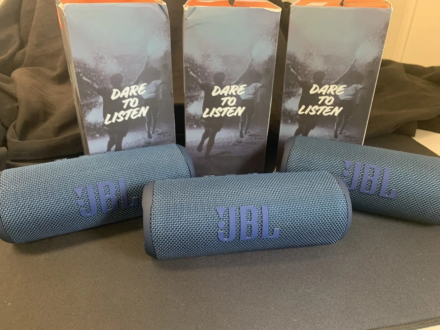 El ritmo no para con el sistema de altavoces de 2 vías del JBL Flip 6, diseñado para ofrecer un sonido nítido y potente. El altavoz de bajos con forma de circuito de carreras ofrece frecuencias bajas y gamas medias excepcionales, mientras que un altavoz de agudos independiente produce frecuencias altas nítidas y claras.